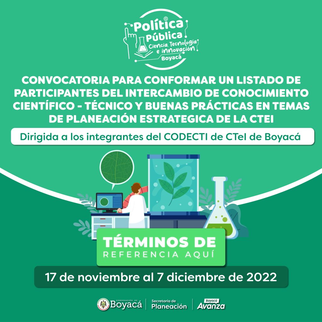 Apoyar el intercambio de conocimiento científico – técnico y buenas prácticas en temas de planeación estratégica de la CTEI a los integrantes del CODECTI, es el propósito de la convocatoria.