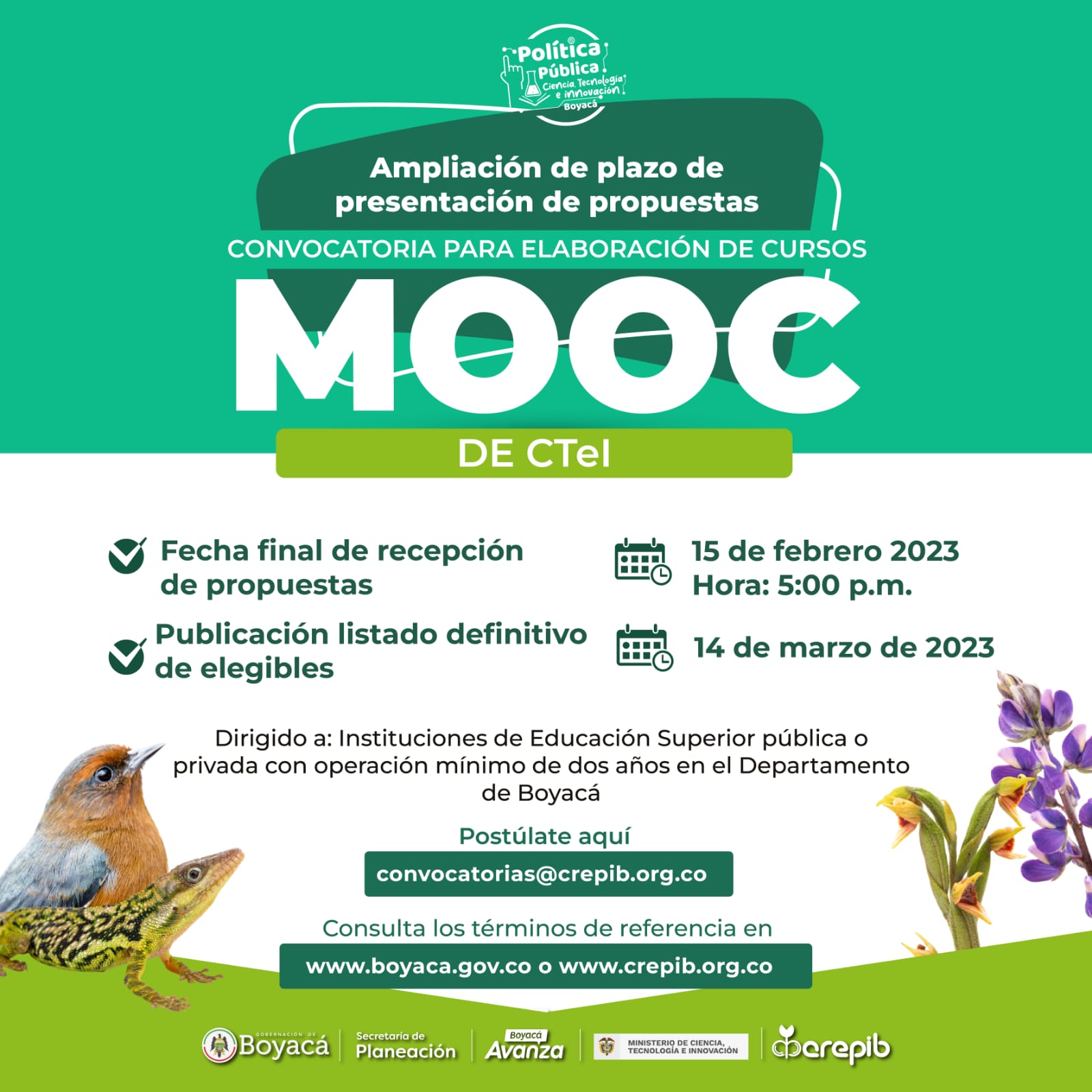 Estos cursos MOOC de Ciencia, Tecnología e Innovación, están dirigidos a instituciones de Educación Superior pública o privada con operación mínimo de dos años en Boyacá.