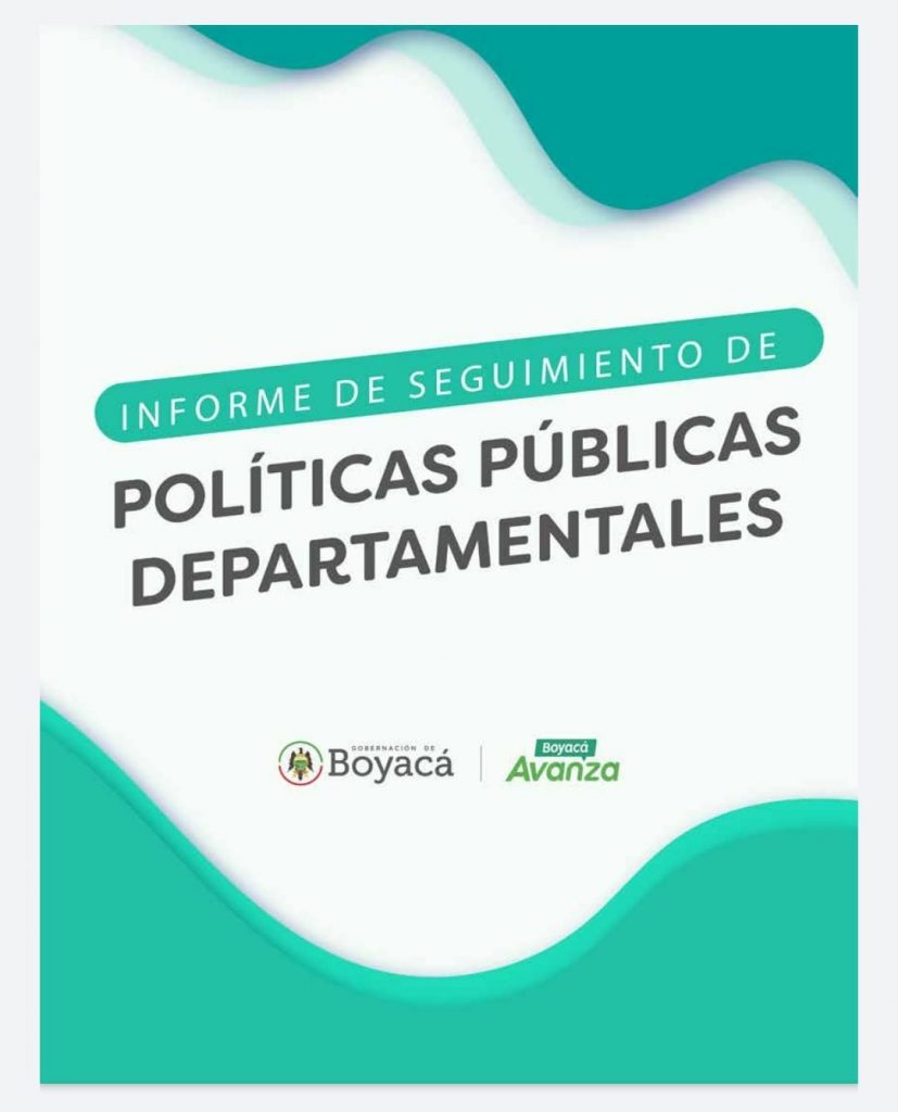 En www.boyaca.gov.co/secretariaplaneacion, la página web de la Secretaría de Planeación de la Administración Boyacá Avanza, ya está disponible el informe de seguimiento a políticas públicas departamentales sobre el trabajo realizado hasta julio del año en curso, en protección animal, salud mental, prevención juvenil de la infracción a la ley, turismo, mujer y género, discapacidad, e infancia y adolescencia.