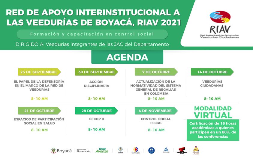 La serie de capacitaciones ha sido organizada por la Secretaría Técnica de la Red Interinstitucional de Apoyo a las Veedurías Ciudadanas de Boyacá.